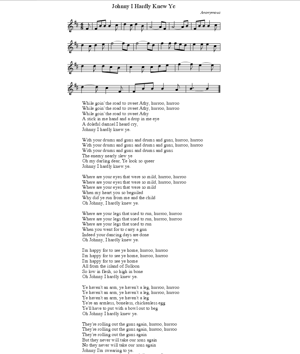 La entrada de hoy nos lleva a un tema musical cuya melodía casi todo el mundo reconocerá, pero cuya historia es antigua y curiosa y ha dado lugar a muchas versiones en las que se ha modificado la pacifista versión original por otras más bélicas e incluso por una canción infantil sobre el Arca …
